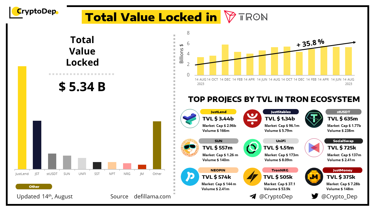 ββTotal Value Locked (TVL) in Tron Ecosystem