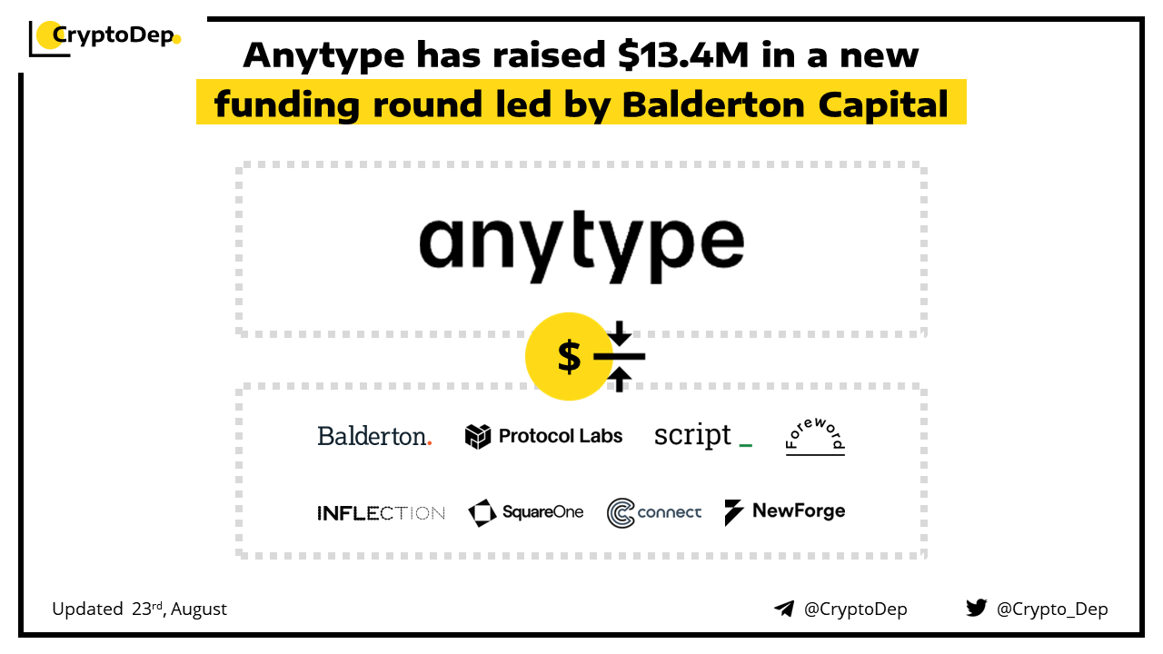 Anytype has closed a $13.4M investment round led by Balderton Capital, with participation from Inflection, Square One, Script Capital, Protocol Labs, Connect Ventures, New Forge, and Foreword VC. Anytype is a local-first, E2E encrypted software designed as a secure place to create and store digital assets.