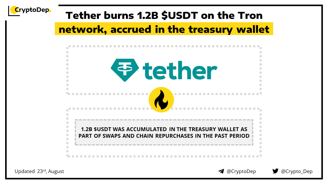 Tether, the largest stablecoin issuer, has conducted the burning event of 1.2B $USDT on the Tron network, accrued in the treasury wallet, as part of past period chain swaps and redemptions. This move will not affect $USDT total supply. Tether is the company that powers the largest stablecoin by market capitalization, $USDT.