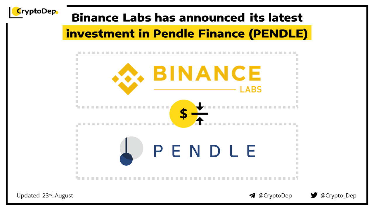 Binance Labs, the venture capital and incubation arm of Binance, has invested in Pendle Finance, a DeFi protocol that enables the tokenization and trading of yield. This investment emphasizes Binance Labsβ commitment to supporting promising projects that will shape the next DeFi generation. Pendle was also the 35th project on the Binance Launchpool platform.