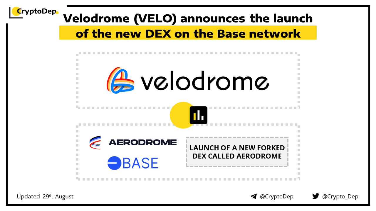 Velodrome Finance decentralized exchange has introduced Aerodrome, a new forked DEX on Coinbase's Base network. The newly launched exchange also plans to conduct an airdrop of its native Aero token for existing users that have locked $VELO tokens in exchange for veVELO, the project's governance token. Through this launch, the project intends to capture a significant portion of both liquidity and value exchange on the Base network.