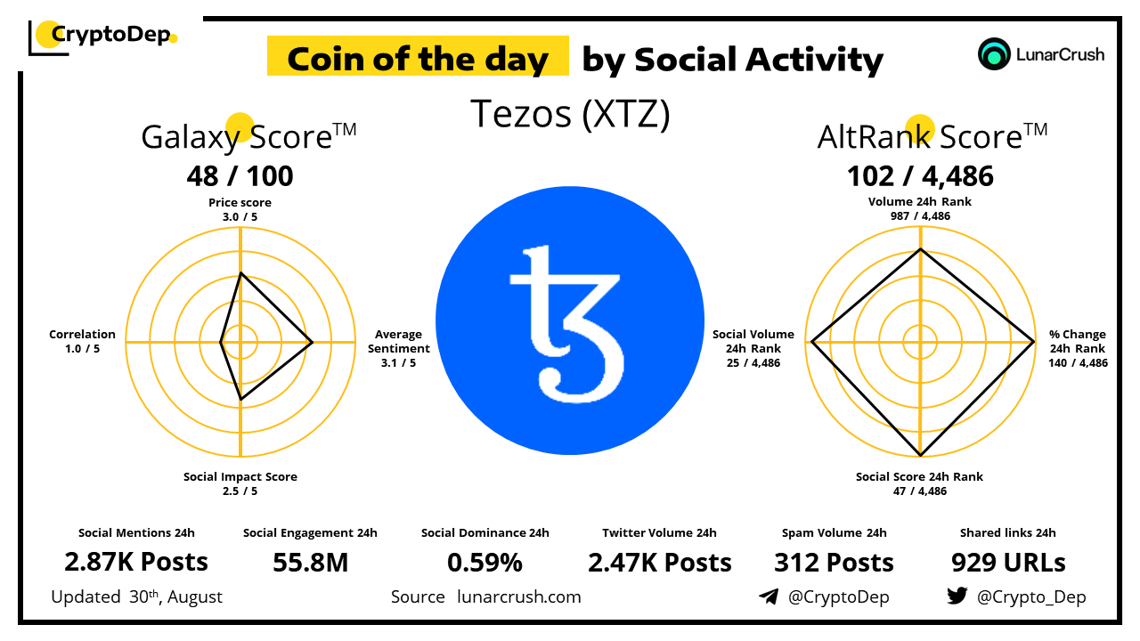ββCoin of the day by social activity - Tezos (XTZ).