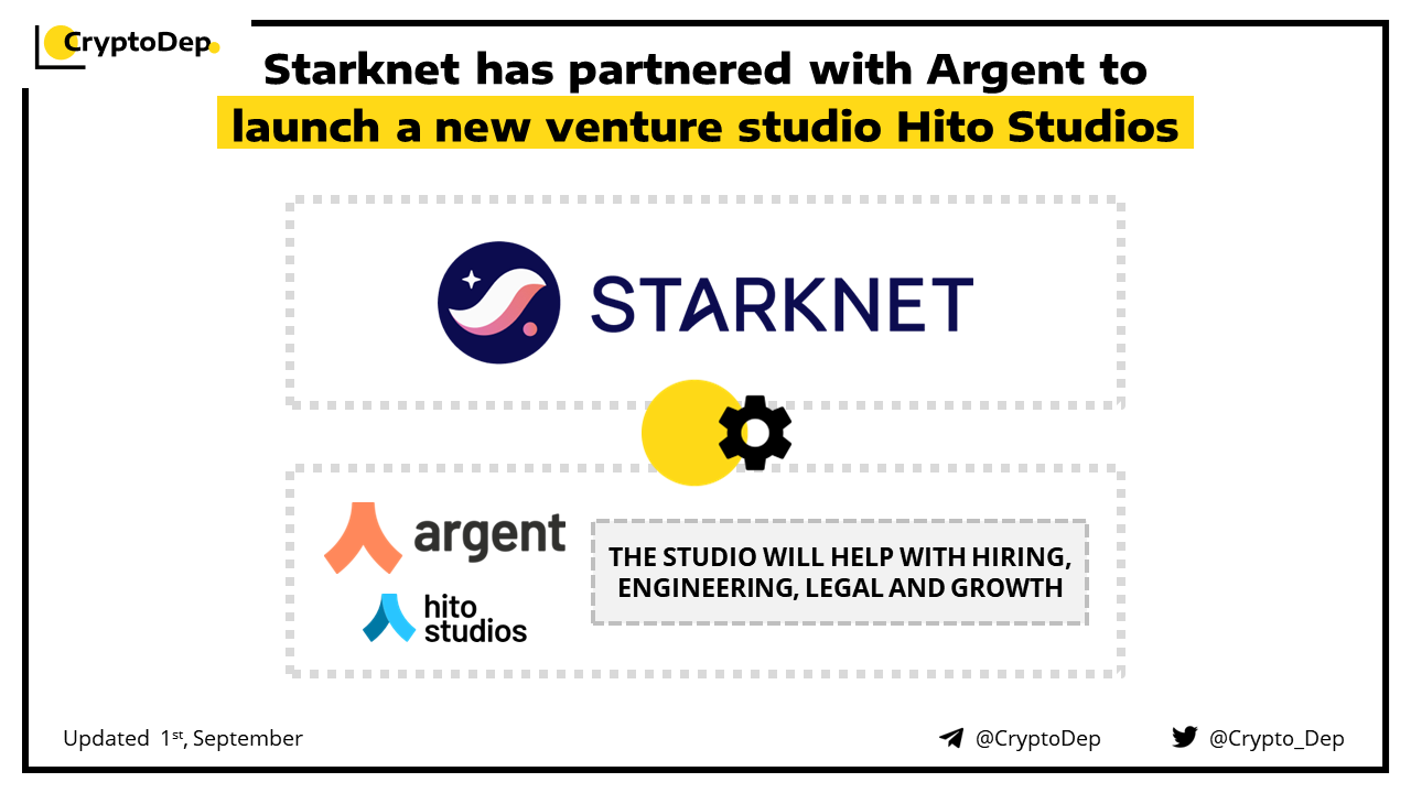 Starknet Foundation teams up with crypto wallet Argent to launch Hito Studios, a new venture studio. The studio will support builders in hiring, engineering, legal, and growth, as well as early-stage investment. Hito Studios will also look to entice teams to build startups on Starknet and will help them to do so while also providing early-stage investment,