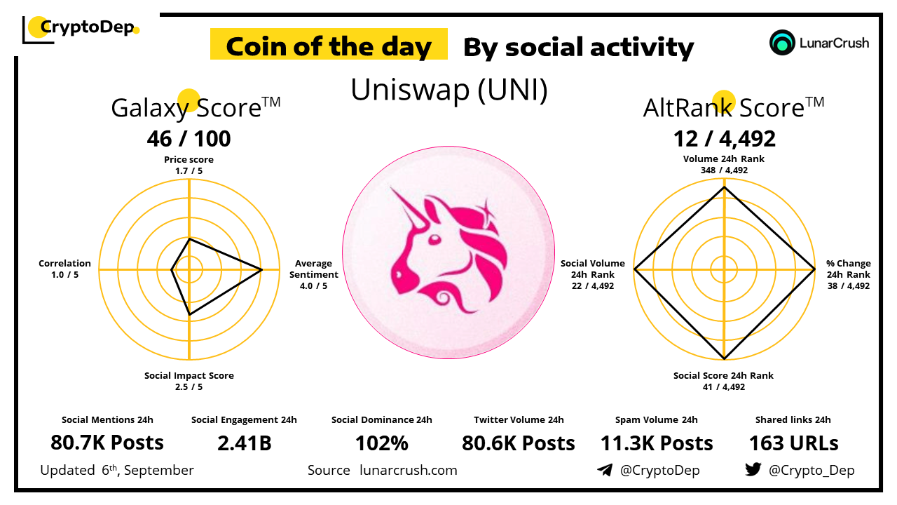 ββCoin of the day by social activity - Uniswap (UNI).