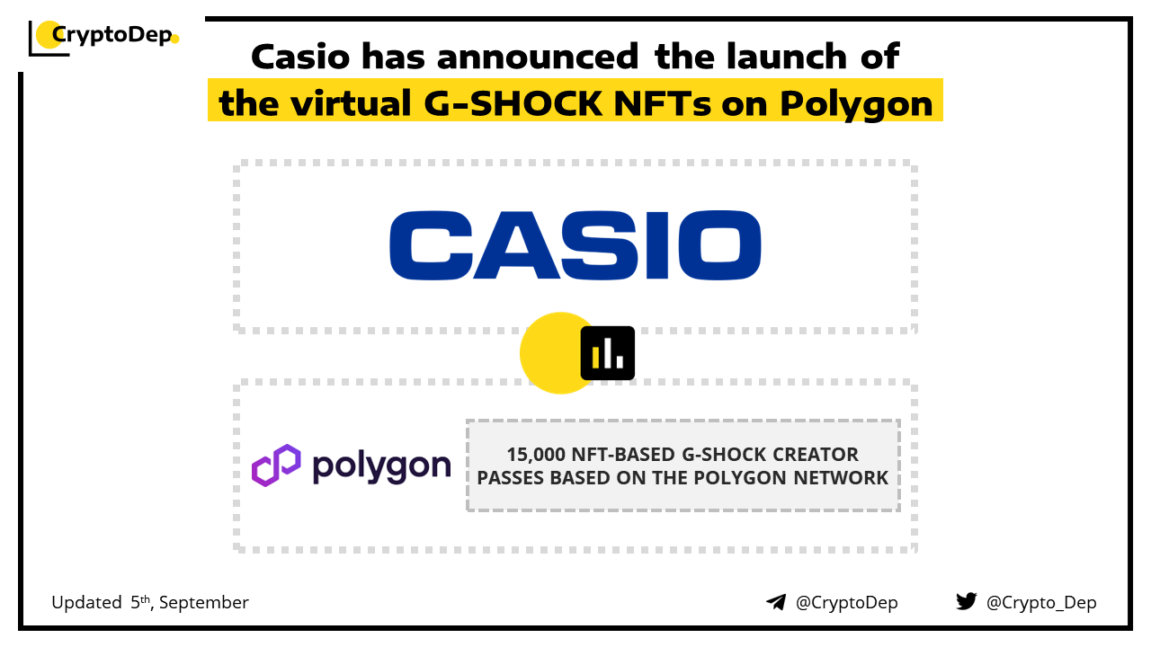 Japanese electronics giant Casio teams up with Polygon Labs to launch its virtual G-SHOCK watch on Polygon's protocols with an NFT-based collection of community access passes. Casio will invite users to submit design ideas for the G-SHOCK creator pass and vote on its appearance, with the winning design becoming a variant of the NFT pass. Casio customers already registered for a CASIO ID at the companyβs membership site can participate in the pre-distribution stage on September 23rd.