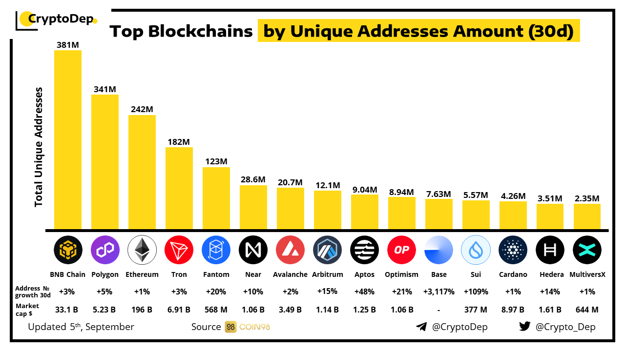 ββTop Blockchains by Unique Addresses Amount in Last 30 Days