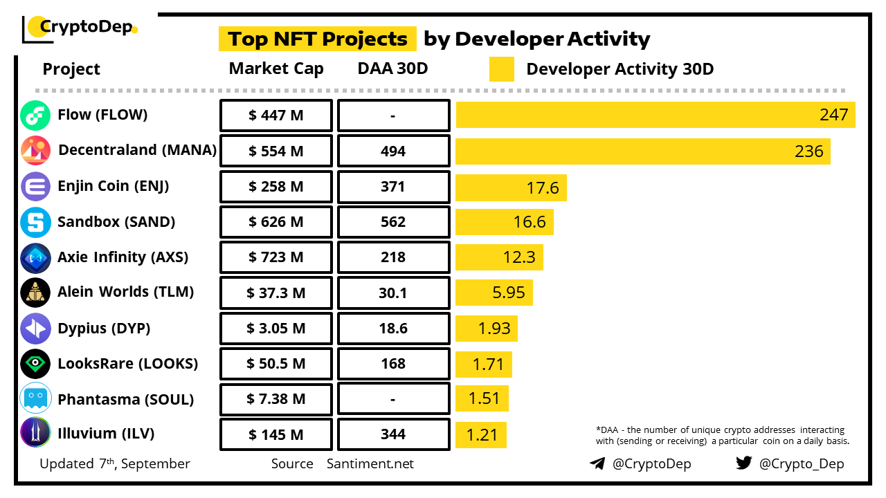 Top NFT Projects by Developer Activity