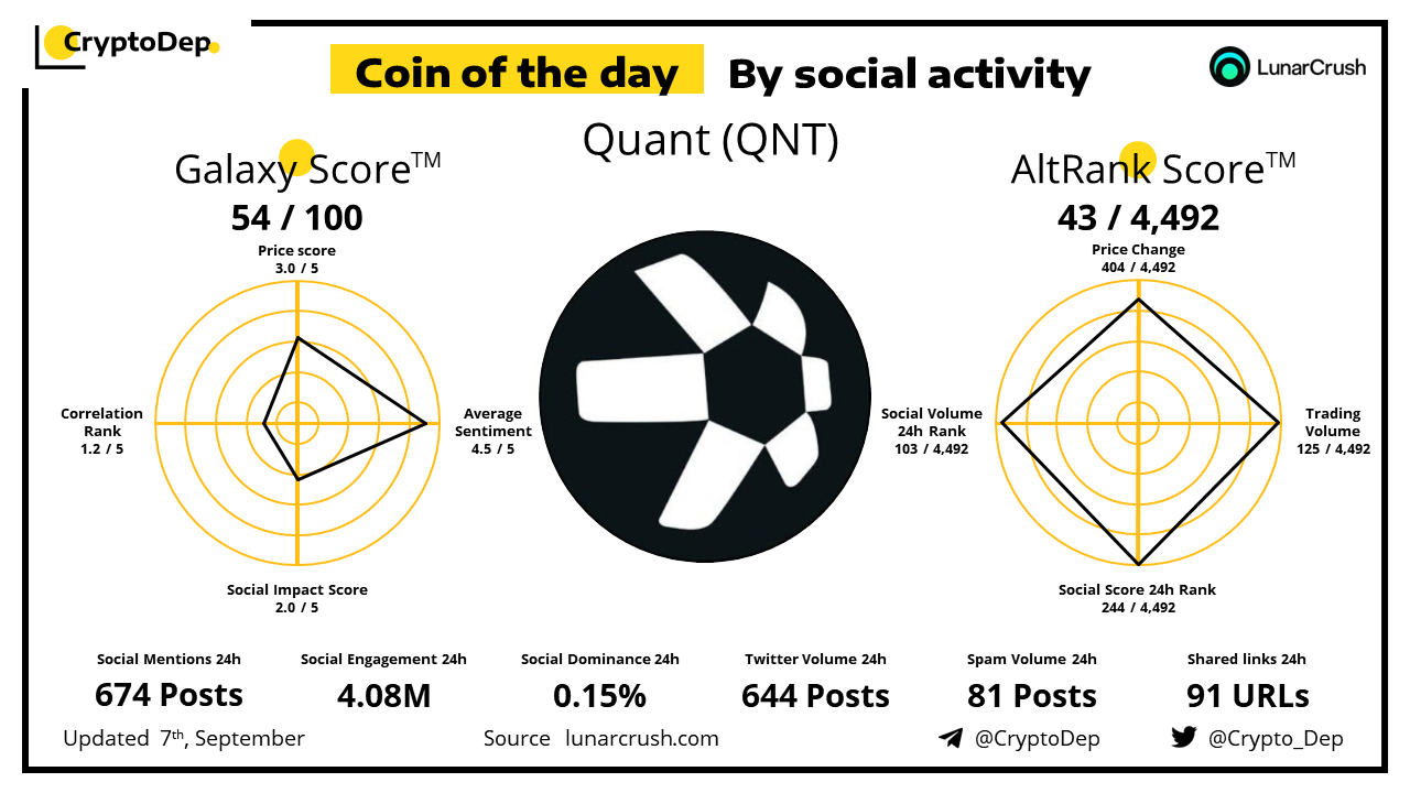 Coin of the day by social activity - Quant (QNT).