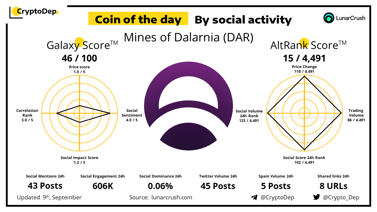 ββCoin of the day by social activity - Mines of Dalarnia (DAR).