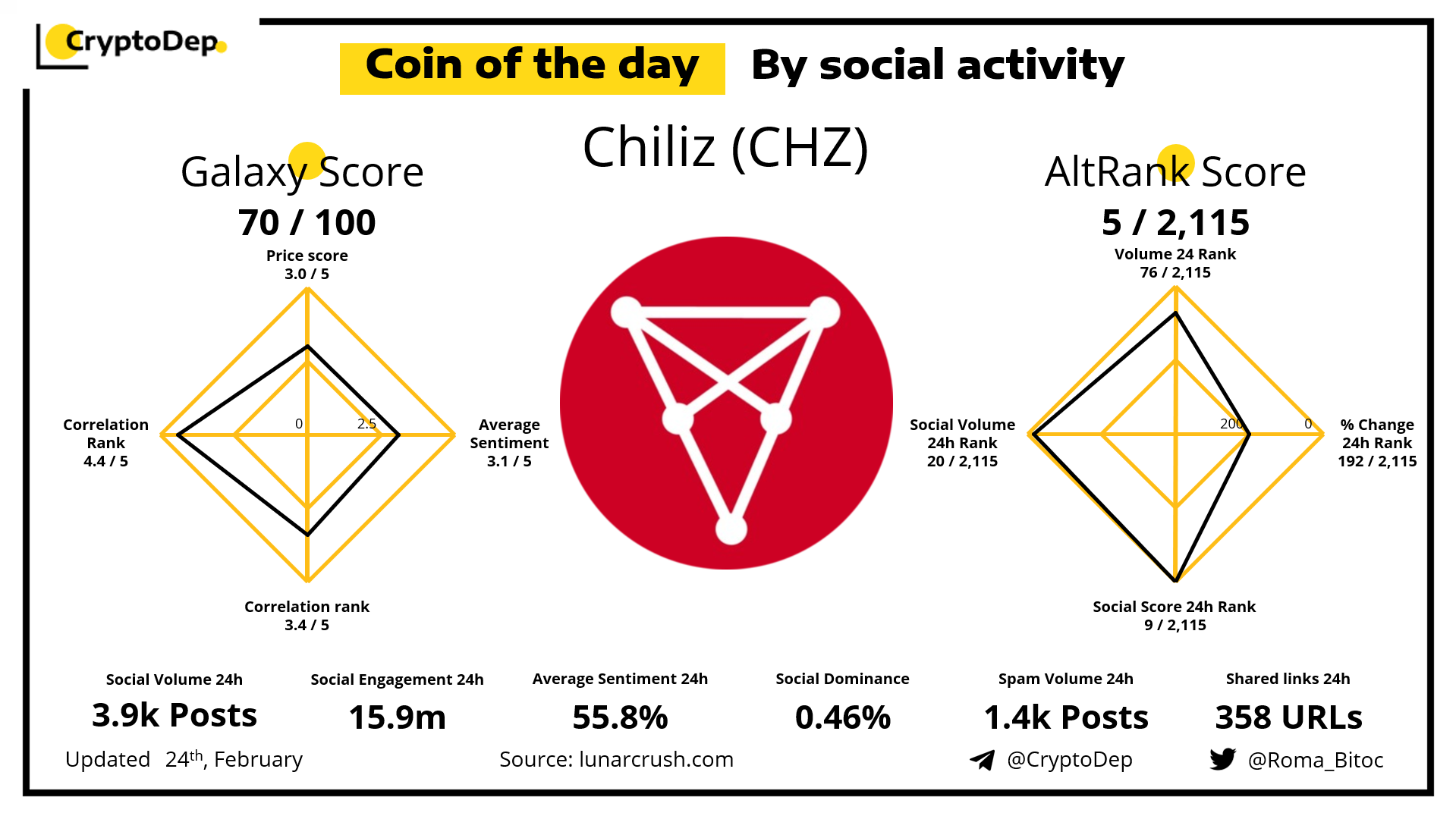 ββCoin of the day by social activity - Chiliz (CHZ).