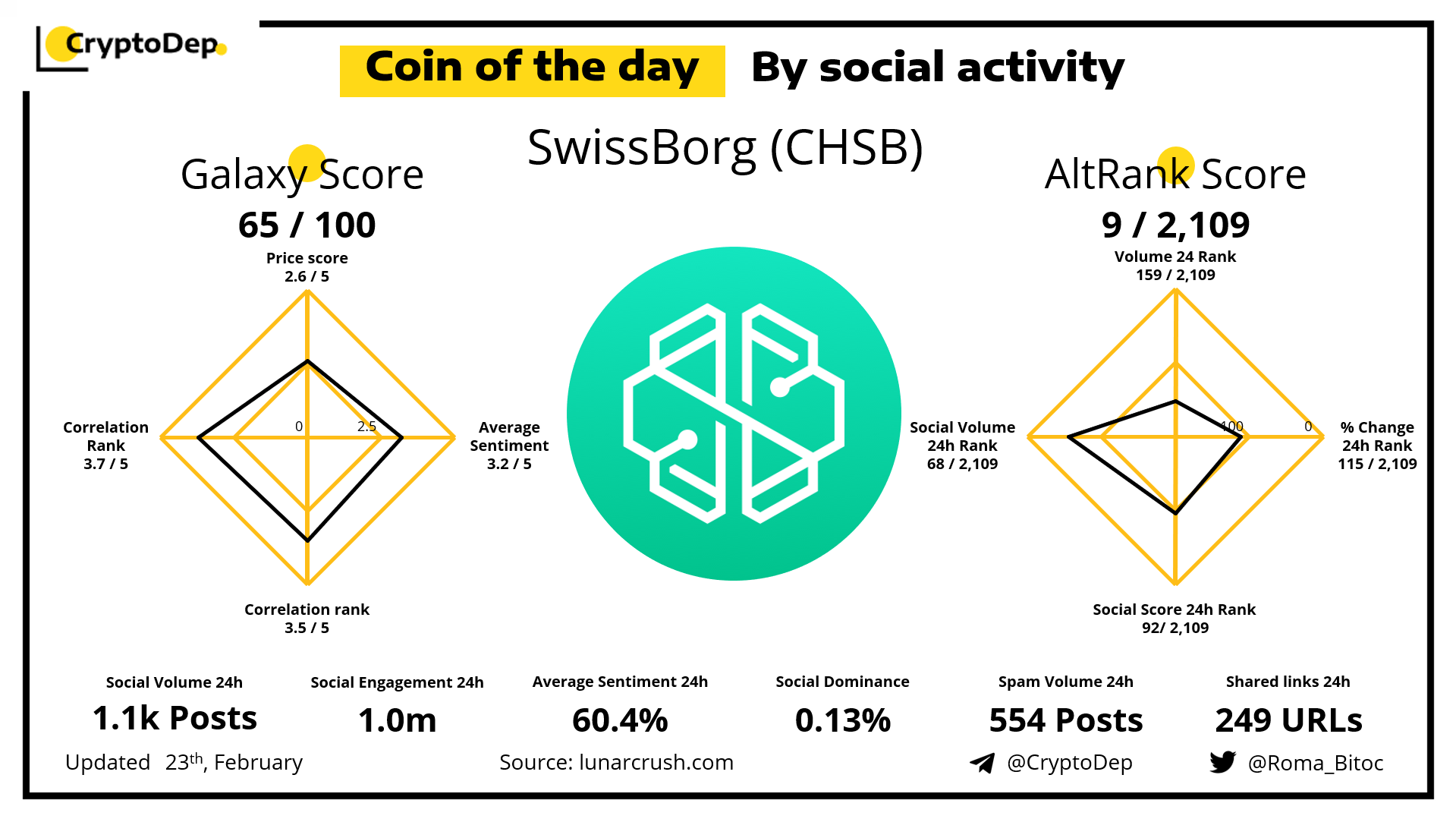 ββCoin of the day by social activity - SwissBorg (CHSB).