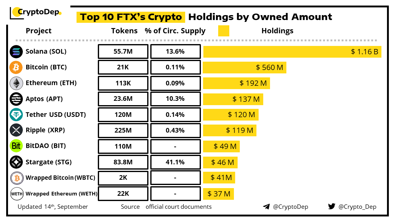 ββTop 10 FTX's Crypto Holdings by Owned Amount
