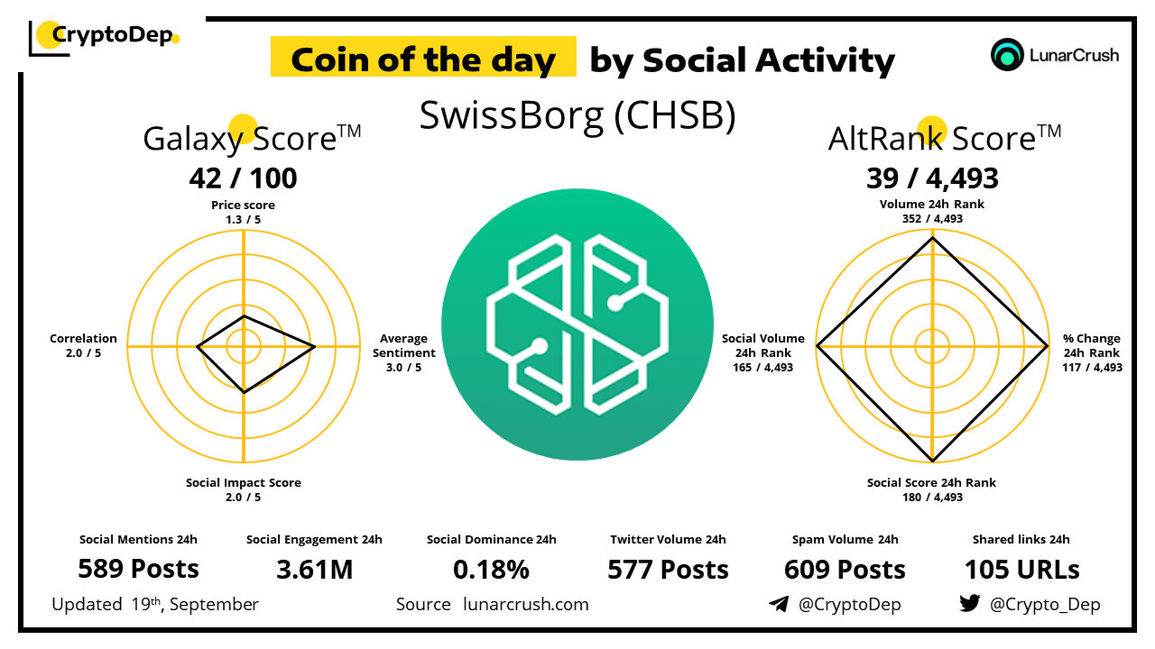 ββCoin of the day by social activity - SwissBorg (CHSB).