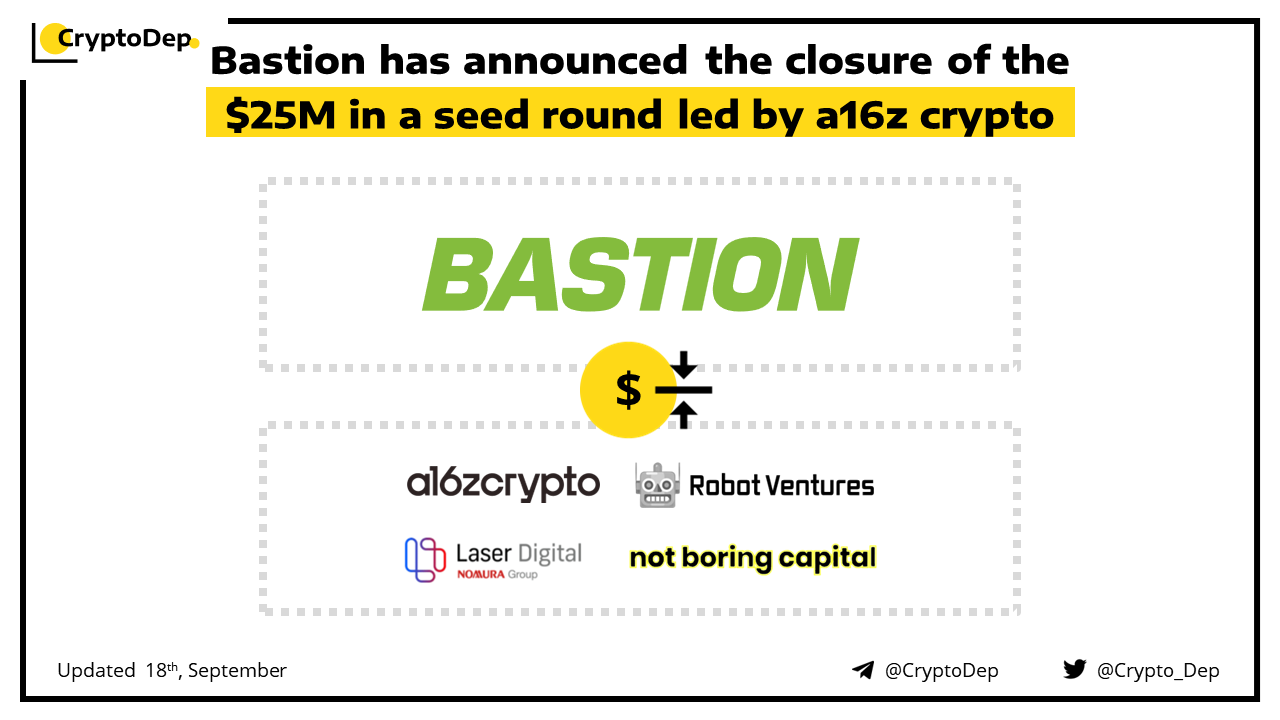 ββBastion has announced the closure of the $25M in a seed round led by a16z crypto