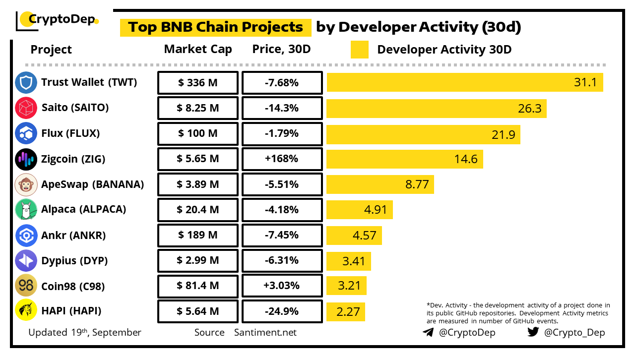 ββTop BNB Chain Projects by Developer Activity (30d)