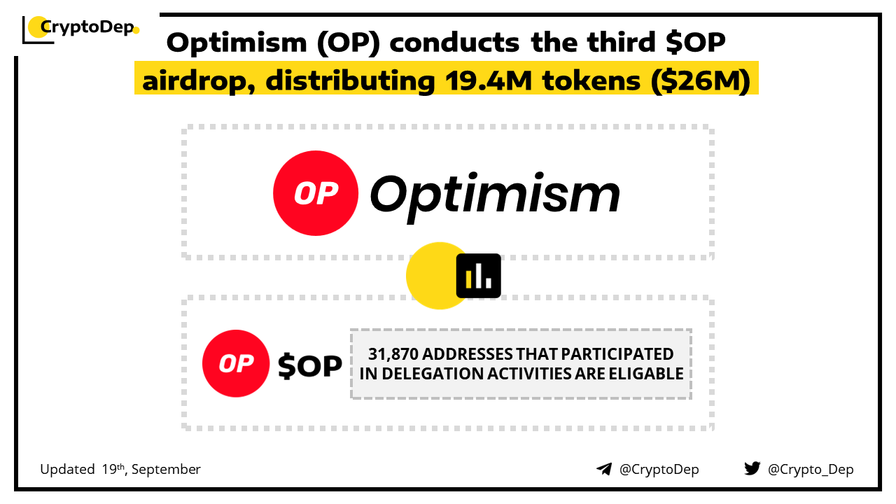 ββOptimism (OP) conducts the third $OP airdrop, distributing 19.4M tokens ($26M)