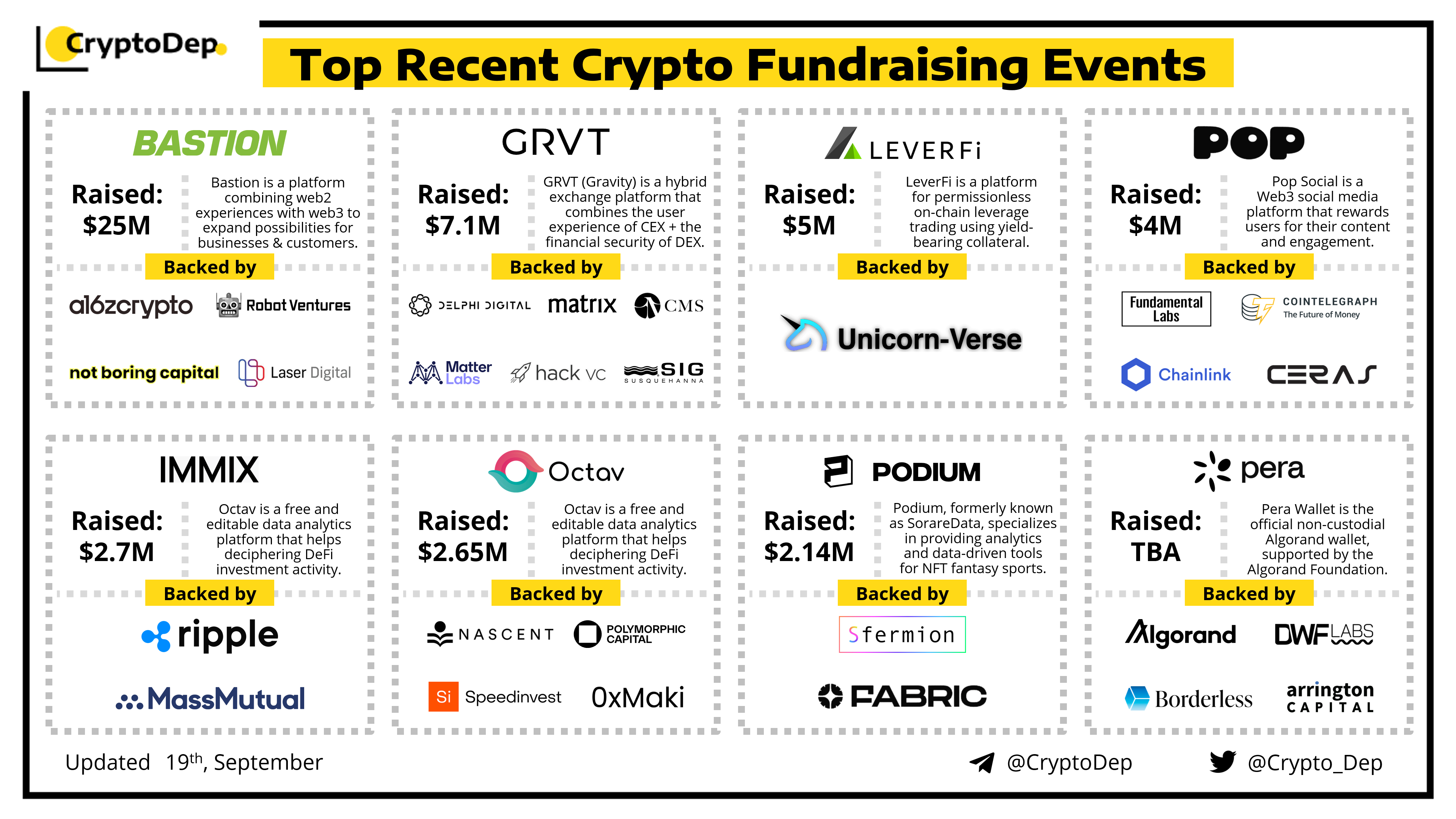 We are excited to present a list of some recent crypto fundraising events, backed by well-known investors such as a16z crypto, Delphi Digital, Robot Ventures, Matter Labs, Fundamental Labs, Algorand Foundation, Cointelegraph, Ripple, Chainlink, and others. Let's take a look!