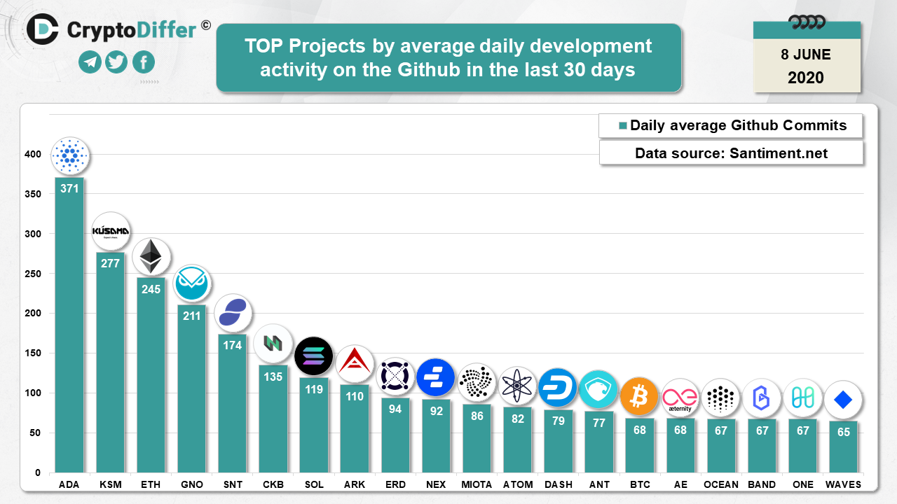 ββTOP Blockchains by average daily development activity on the Github in May - June 2020