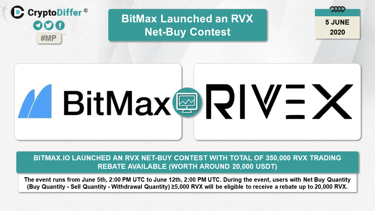 BitMax launched an RVX Net-Buy Contest with total of 350,000 RVX trading rebate available (worth around 20,000 USDT)