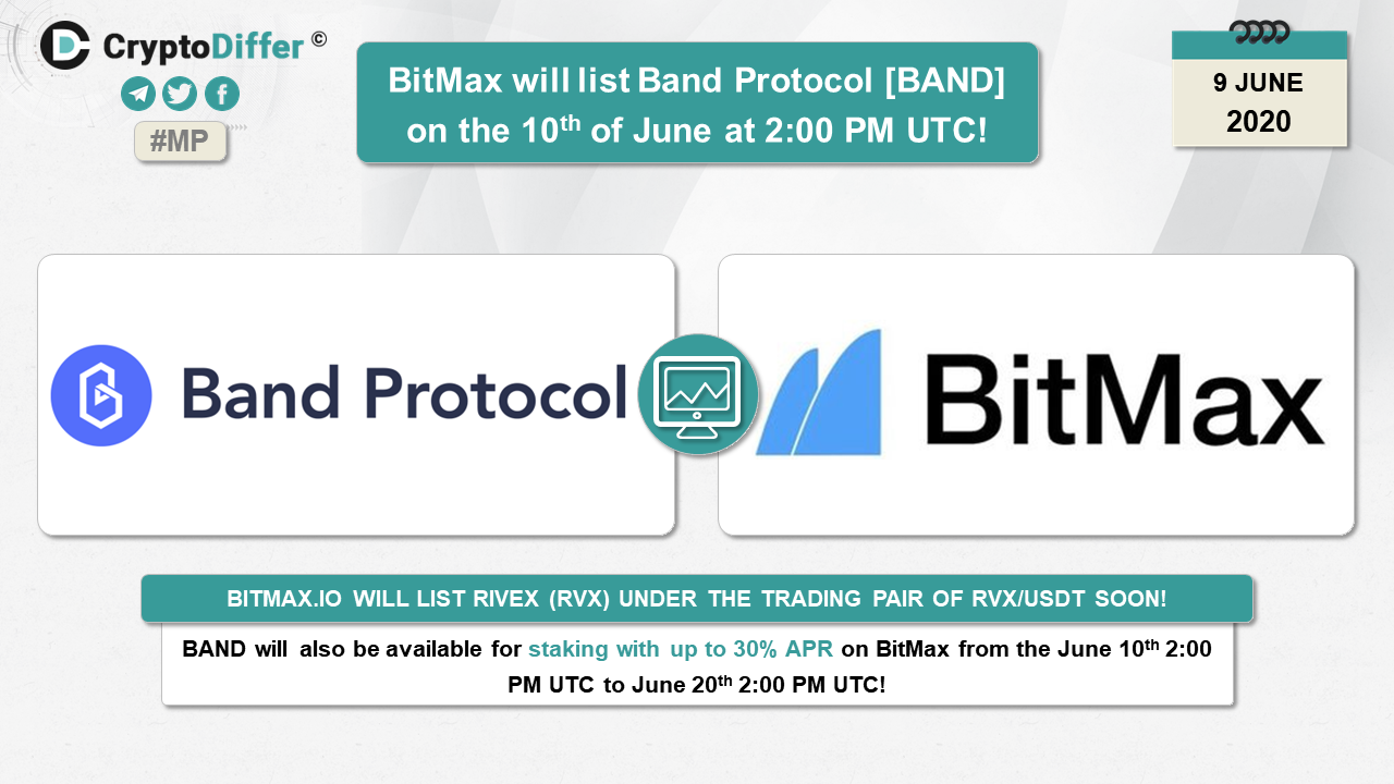 ββBitMax will list Band Protocol [BAND] under the trading pair BAND/USDT on the 10th of June at 2:00 PM UTC!