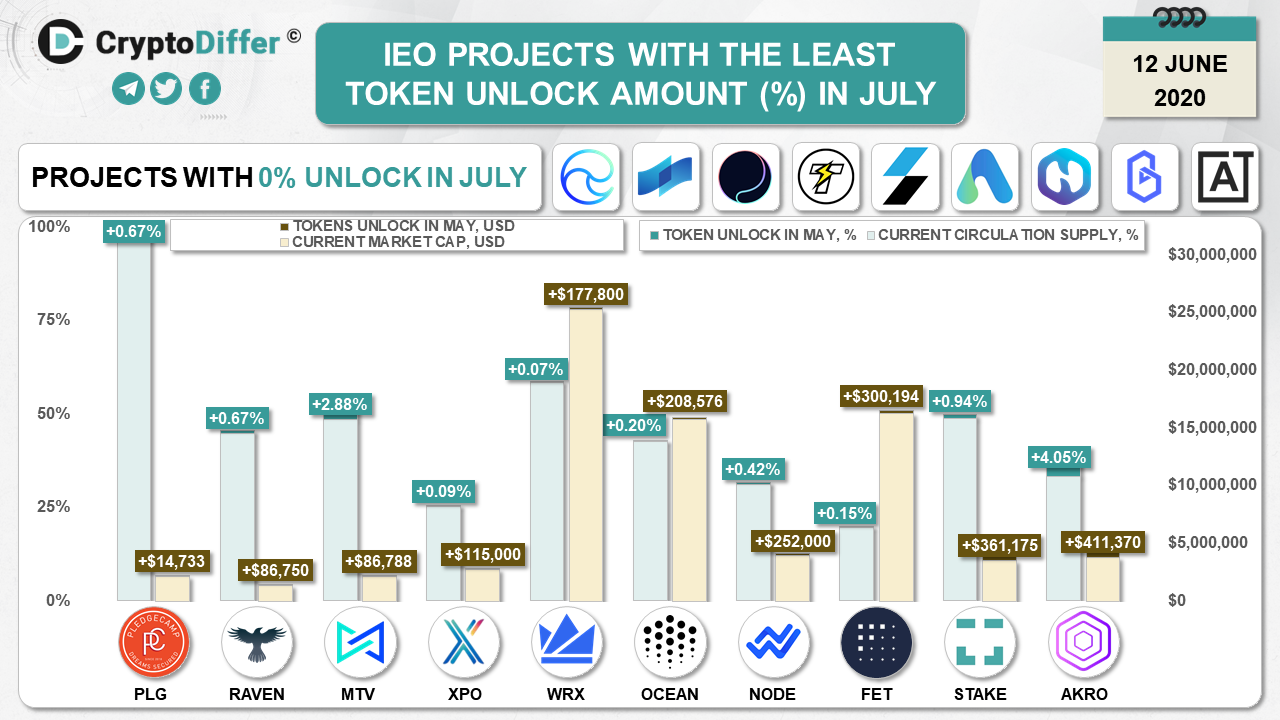We have chosen ones with the lowest percentage of supply to be unlocked in July 2020. We might miss some projects, so feel free to let us know in our chat or in comments under the twitter post.