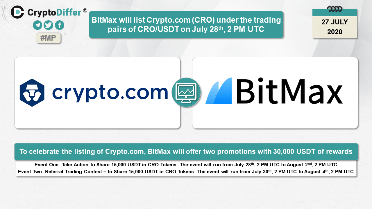 ββBitMax will list Crypto.com (CRO) under the trading pairs of CRO/USDT on July 28th, 2 PM UTC