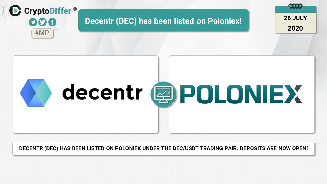ββDecentr (DEC) has been listed on Poloniex under the DEC/USDT trading pair!
