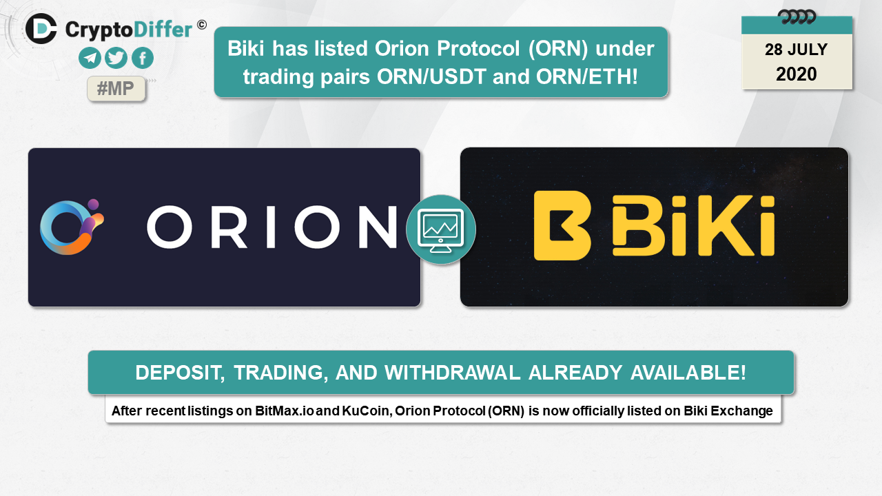 ββBiki has listed @OrionProtocol (ORN) under trading pairs ORN/USDT and ORN/ETH!