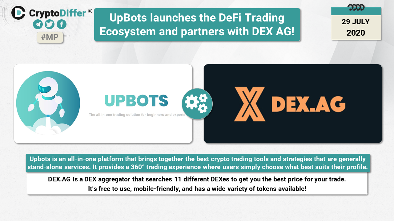 ββUpBots launches the DeFi Trading Ecosystem and partners with DEX AG as itβs first DeFi partner, more to come in the coming months!