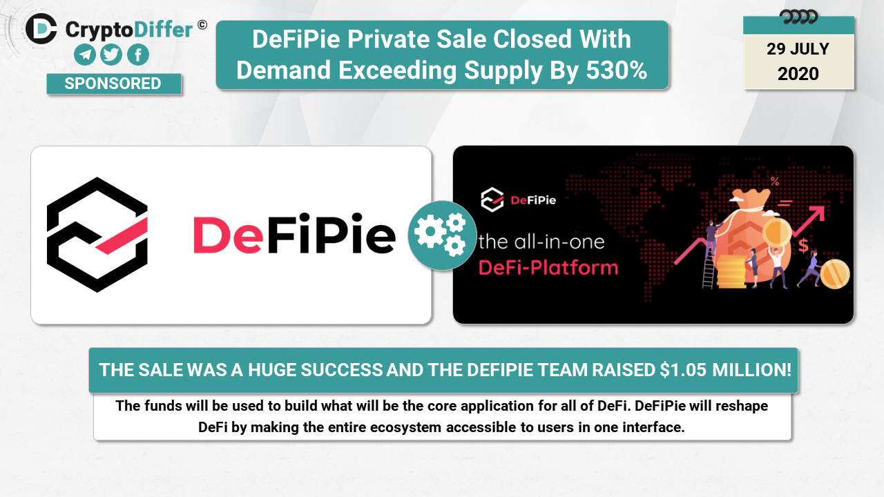 ββDeFiPie Private Sale Closed With Demand Exceeding Supply by 530%, raised $1.05m USD!