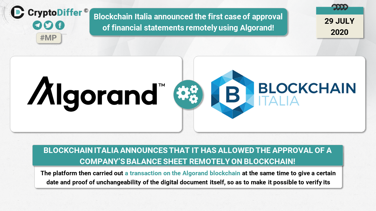 ββBlockchain Italia announced the first case of approval of financial statements remotely using Algorandβs blockchain!