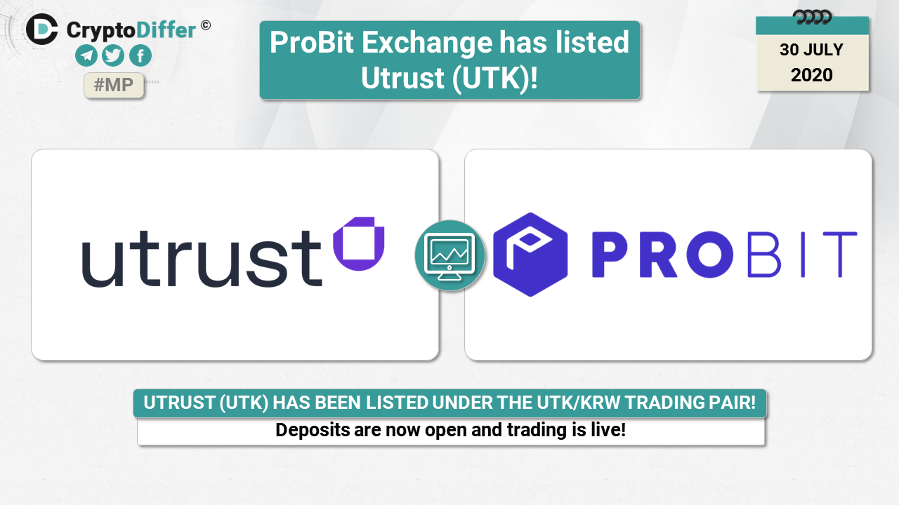 π https://support.probit.com/hc/en-us/articles/900001962503-ProBit-Exchange-Lists-Utrust-UTK-