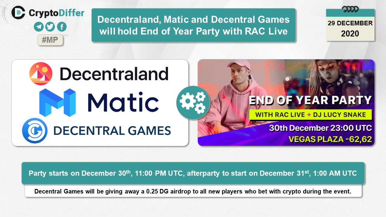 ββDecentraland, Matic and Decentral Games will hold End of Year Party with RAC Live