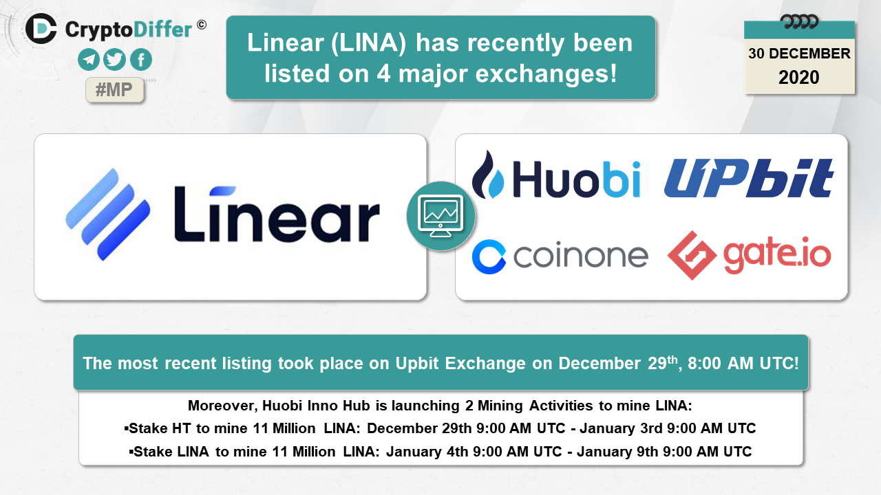 ββLinear (LINA) has recently been listed on 4 major exchanges!
