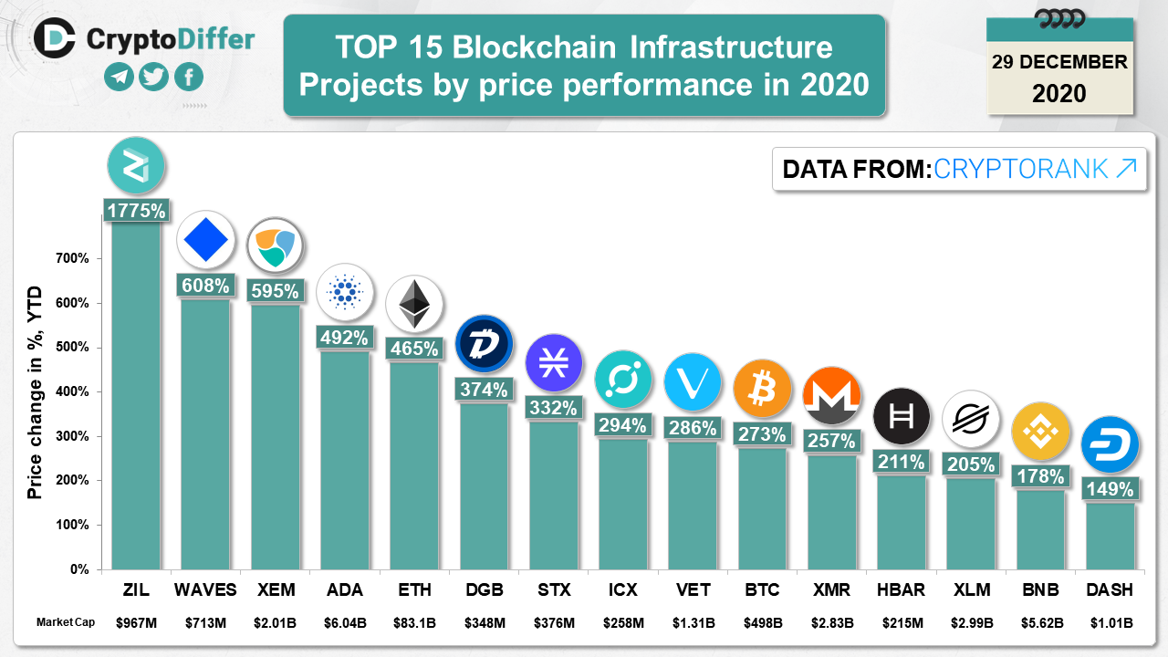 ββTOP 15 Blockchain Infrastructure Projects by price performance in 2020