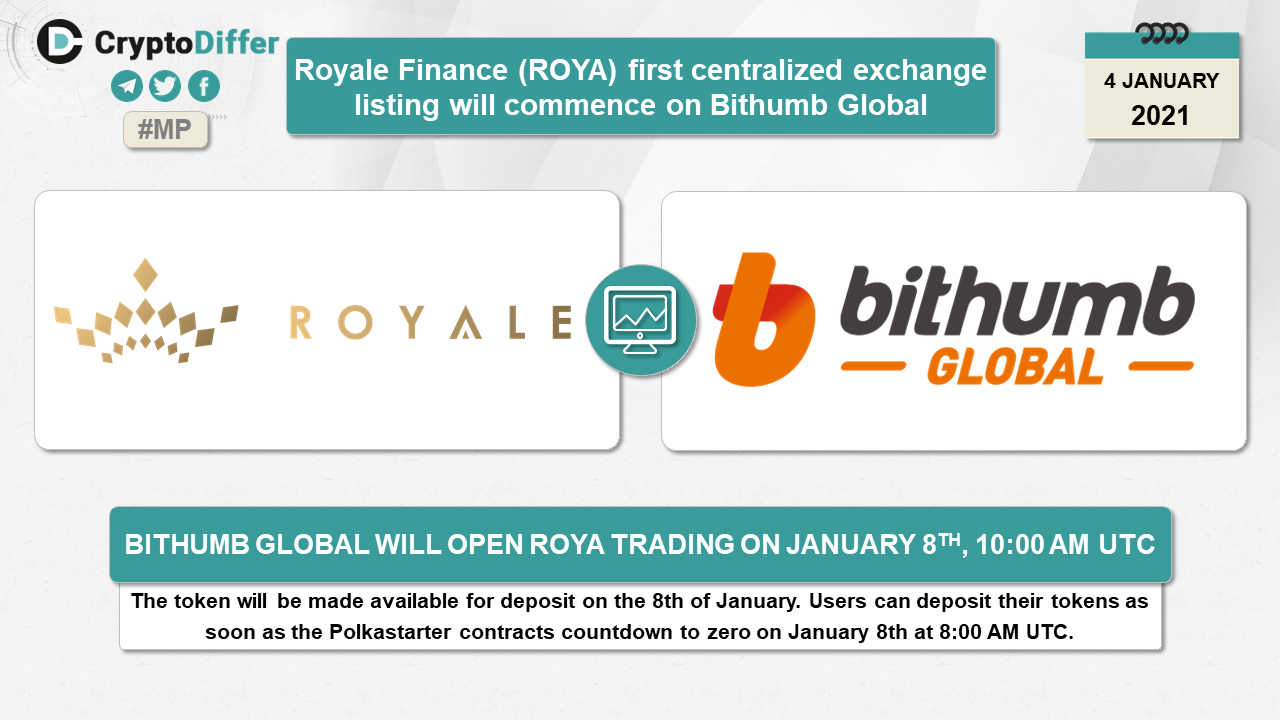 ββRoyale Finance (ROYA) first centralized exchange listing will commence on Bithumb Global