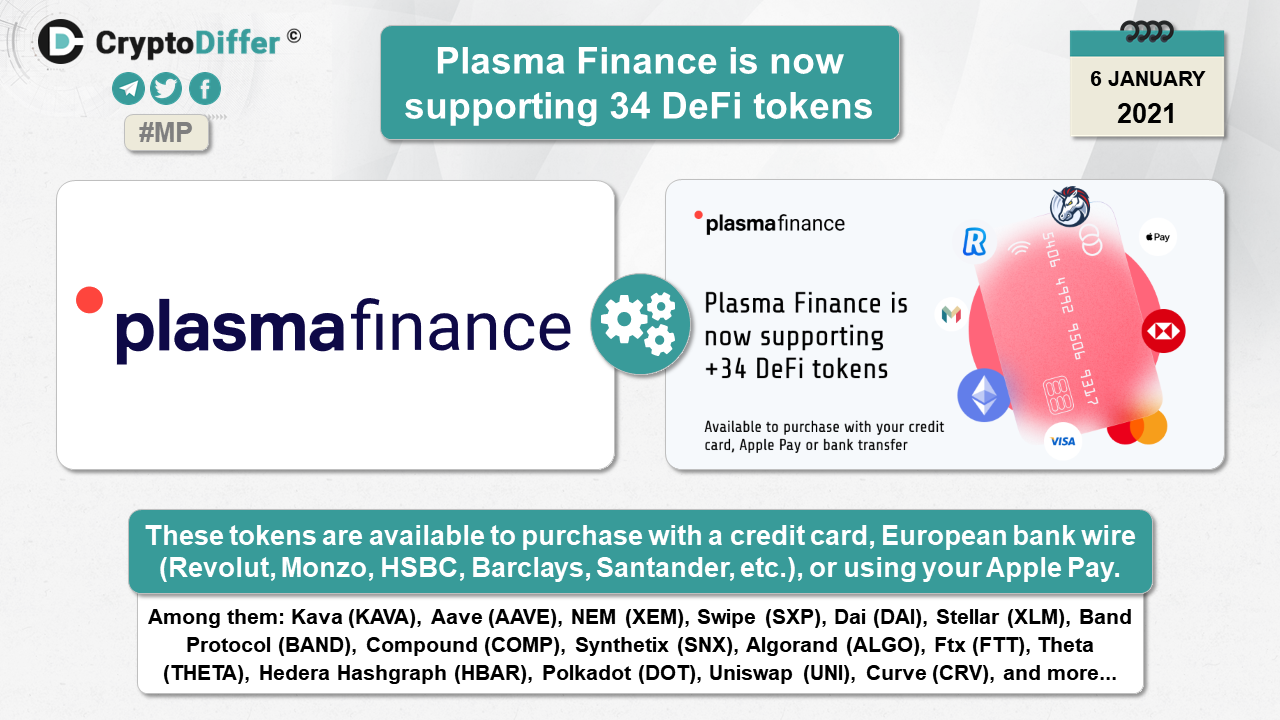 π medium.com/plasmapay/plasma-finance-expands-its-list-of-available-tokens-to-purchase-with-card-apple-pay-or-bank-wire-5fa28dbe20cf