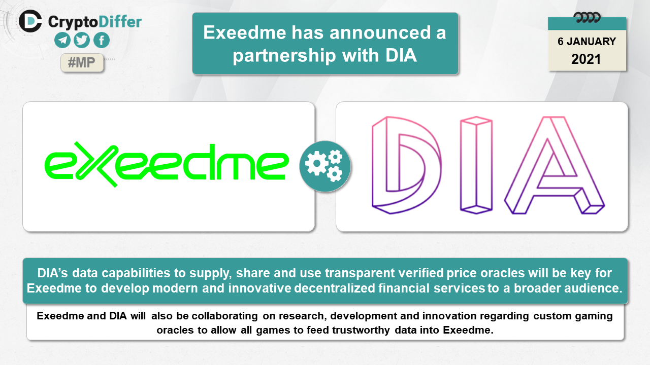 Exeedme and DIA will also be collaborating on research, development and innovation regarding custom gaming oracles to allow all games to feed trustworthy data into Exeedme.