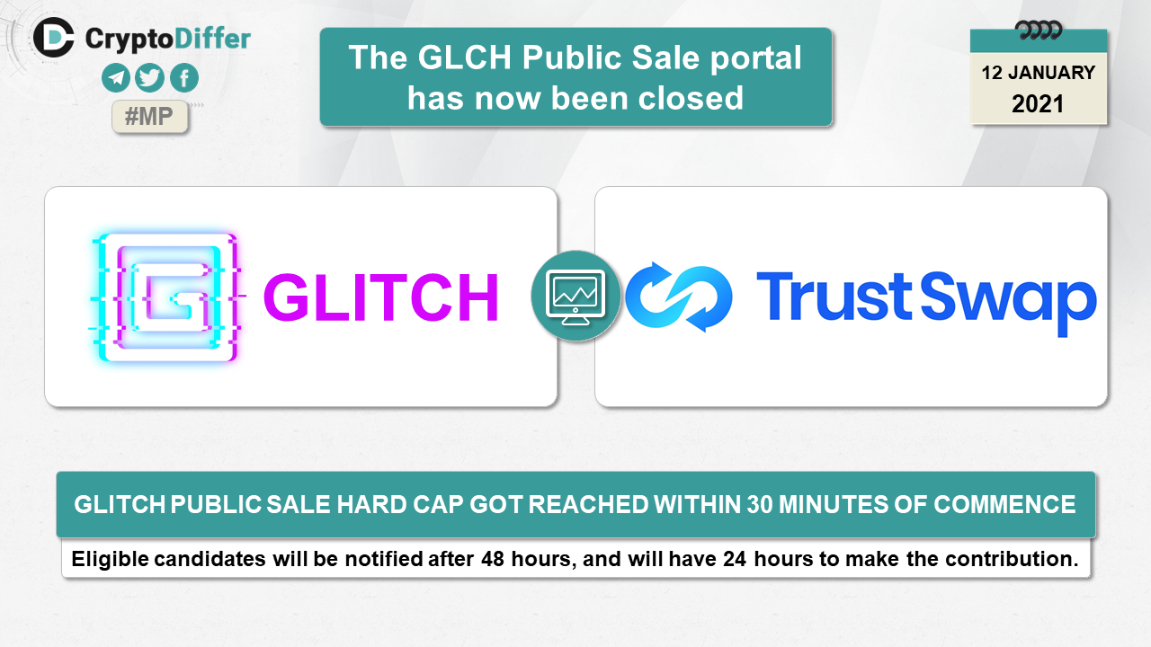 GLITCH Public Sale hard cap got reached within 30 minutes of commence.