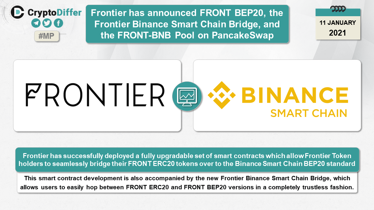 ββFrontier has announced FRONT BEP20, the Frontier Binance Smart Chain Bridge, and the FRONT-BNB Pool on PancakeSwap