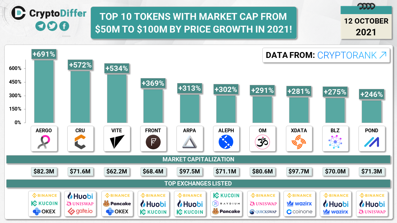 ββTOP 10 TOKENS WITH MARKET CAP FROM $50M TO $100M BY PRICE GROWTH IN 2021!