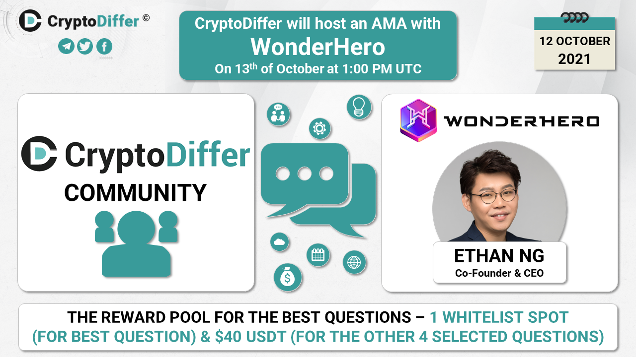 βββοΈDear community, CryptoDiffer will hold an AMA with WonderHero on the 13th of October at 1:00 PM UTC in the CryptoDiffer Telegram Chat!