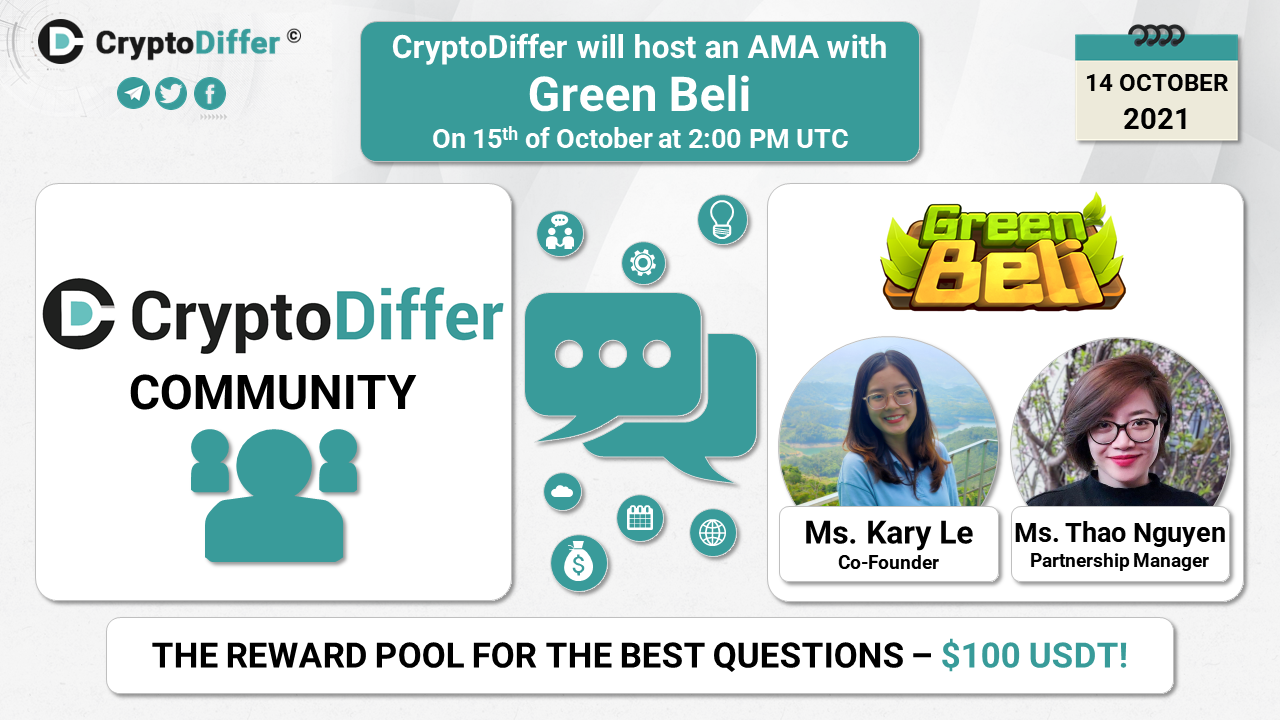 ❗️Dear community, CryptoDiffer will hold an AMA with Green Beli on the 15th of October at 2:00 PM UTC in the CryptoDiffer Telegram Chat!