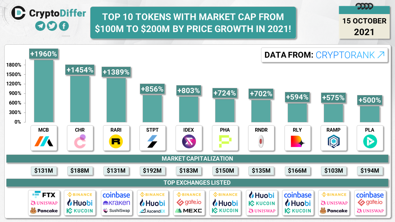 ββTOP 10 TOKENS WITH MARKET CAP FROM $100M TO $200M BY PRICE GROWTH IN 2021!