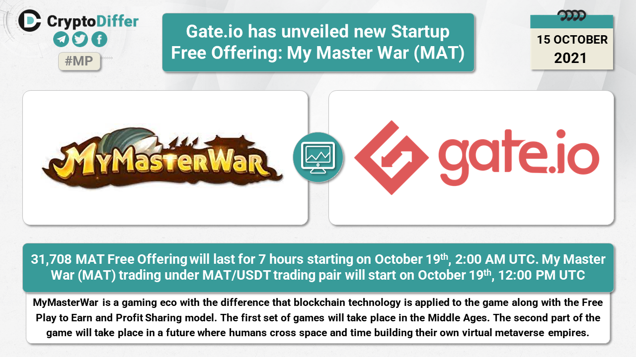 31,708 MAT Free Offering will last for 7 hours starting on October 19th, 2:00 AM UTC. My Master War (MAT) trading under MAT/USDT trading pair will start on October 19th, 12:00 PM UTC.