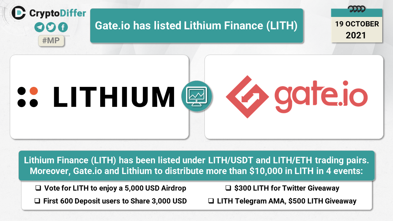Lithium Finance (LITH) has been listed under LITH/USDT and LITH/ETH trading pairs. Moreover, Gate and Lithium to distribute more than $10,000 in LITH in 4 events.