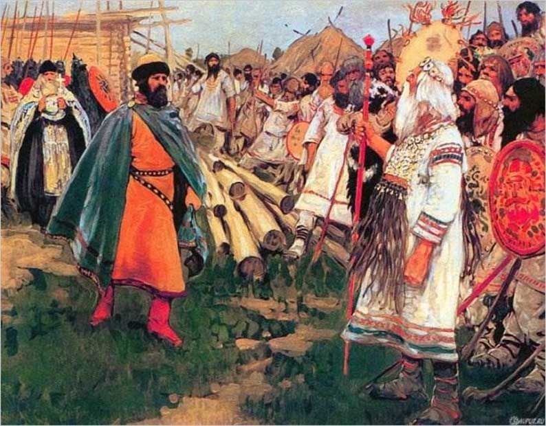 💀Волхв вышел на улицу и начал хулить христианского бога. Против него вышел епископ и люди встали на сторону волхва, а князь Глеб и дружина на сторону епископа.