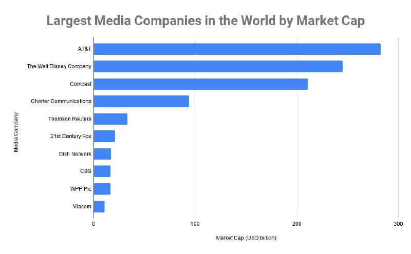 Современный Disney это не только голливудская студия, это ESPN, National Geographic, ABC и т.д. Comcast - это CNBC, MSNBC, NBC и Sky. ViacomCBS - это вообще более 450 кабельных каналов и 150 радиостанций по всему миру. Та же история с Bloomberg, Time Warner, News Corp, AT&T, Fox, RTL, CEME, Modern Times, Sanoma еще дюжиной топ игроков.