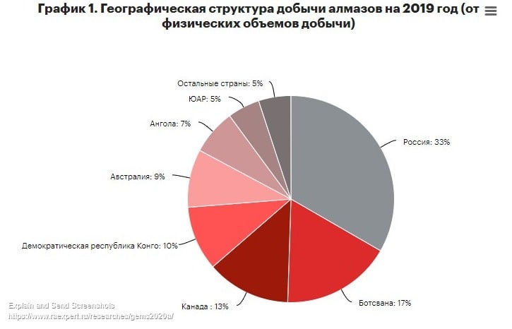 Для России, страны с самыми большими запасами в 610 млн и "Алросой", контролирующей четверть мировой добычи, новости кажутся удручающими. Но экспорт в $2,2 млрд не так критичен для РФ, как для Ботсваны, Конго и ЮАР.