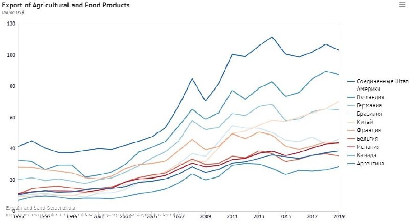 В агросекторе США занято менее 1%, но он настолько эффективен, что делает страну топ экспортером ($150 млрд в год). В Бразилии 34% площади страны используется под посевы и пастбища. Основные статьи экспорта - говядина, кофе, сахарный тростник, соя, кукуруза и фрукты.
